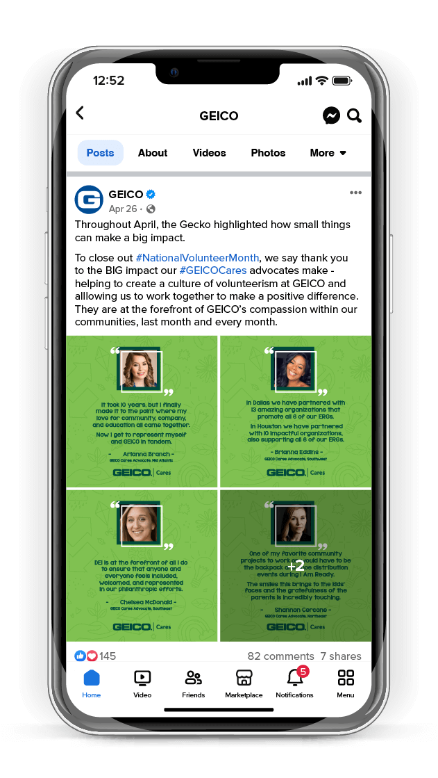 This campaign built trust with both customers and associates, portraying GEICO as a community-centered brand. With coordinated paid efforts and influencer content, it drove a 52% increase in Facebook engagement and a 4% gain in Instagram followers.